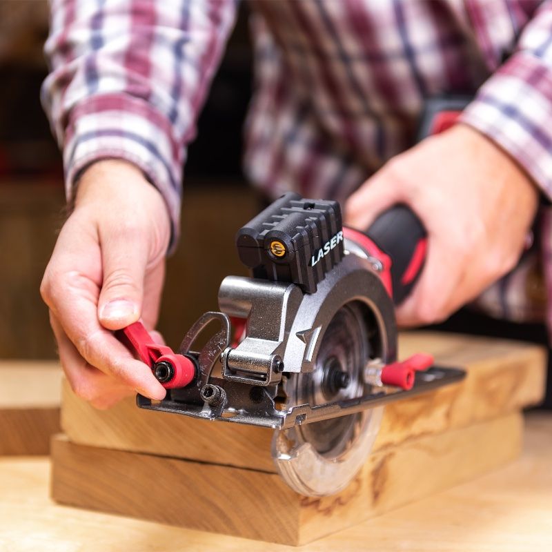 Лазерный указатель линии распила, боковой упор и возможность точной настройки наклона и глубины пропила обеспечивают высокую точность работ при резке древесины, пластика, алюминия и прочих материалов.