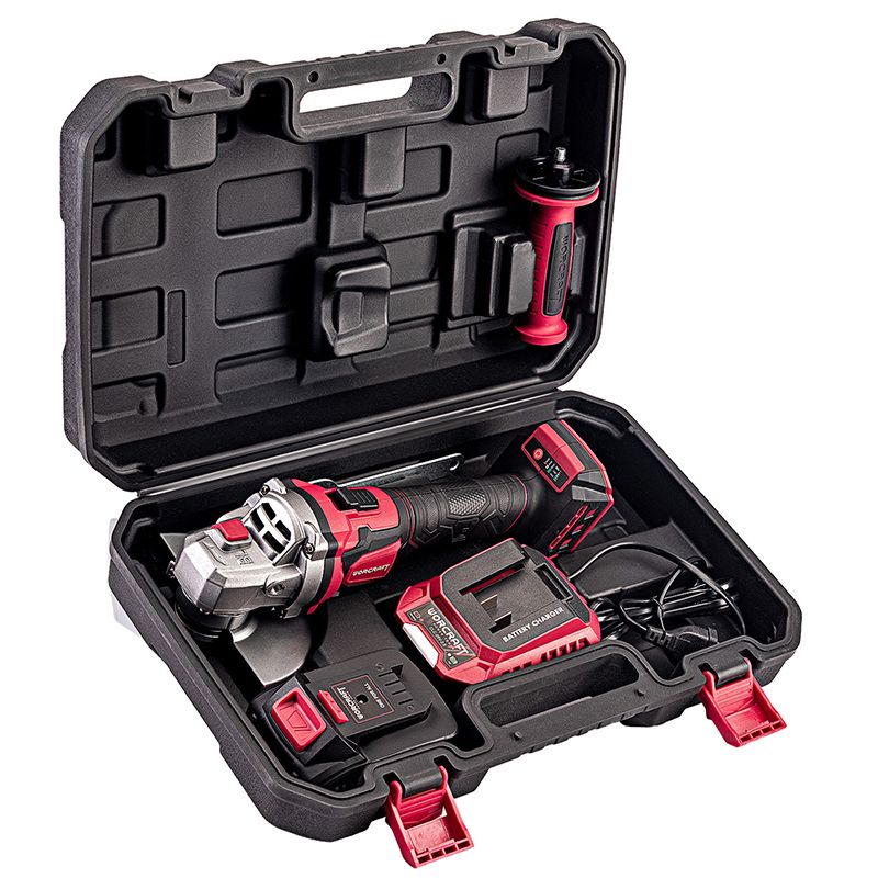 Аккумуляторная бесщеточная болгарка WORCRAFT CAG-S20LiBEM-125 поставляется в комплекте с аккумулятором, зарядным устройством и прочным пластиковым кейсом.