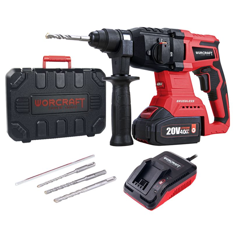 Аккумуляторный перфоратор WORCRAFT CRH‑S20LiBAM – многоцелевой высокопроизводительный инструмент с бесщеточным двигателем для выполнения разнообразных строительно-ремонтных работ.