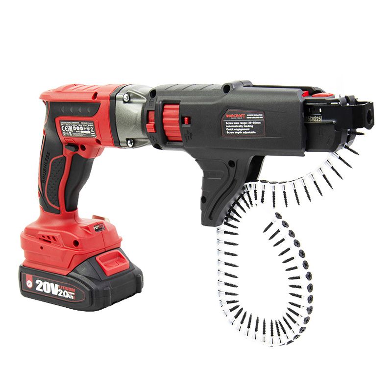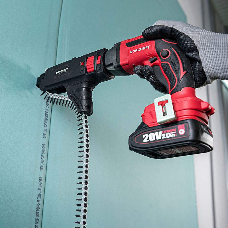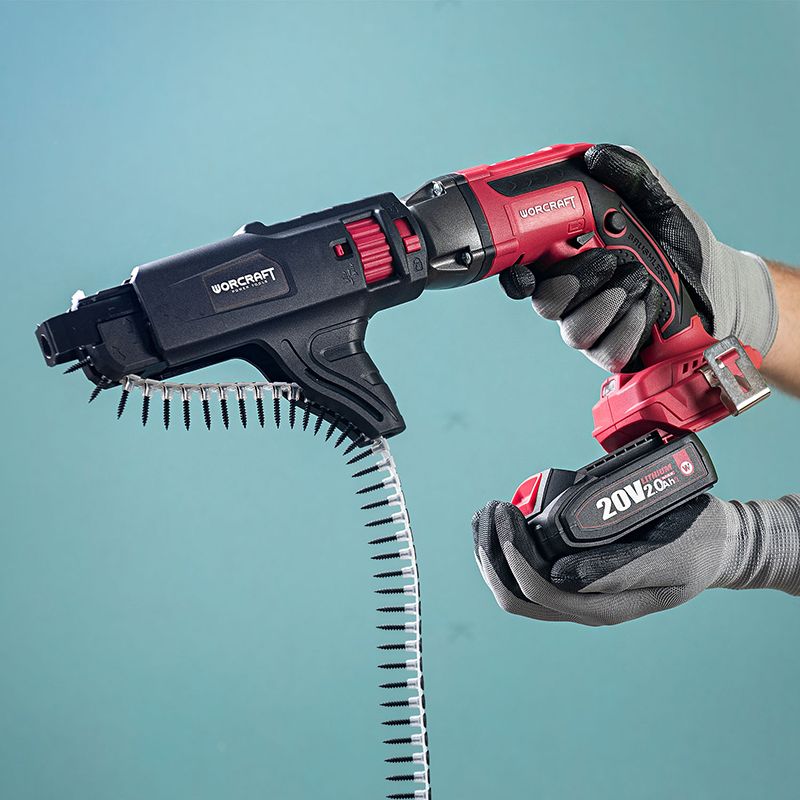 Шуруповерт ленточный аккумуляторный WORCRAFT CDIS-S20LiBM - идеально подходит для быстрого монтажа гипсокартона, деревянных конструкций и других отделочных работ, которые требуют точности и экономии времени.