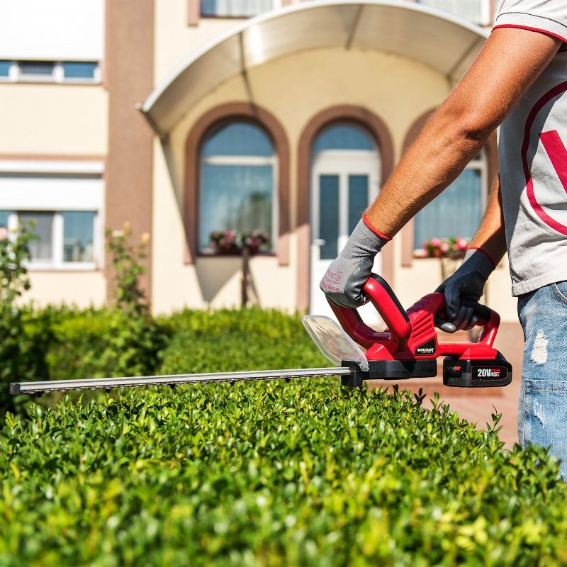 Мощный 20 В двигатель в сочетании со скоростью среза 1200 рез/мин обеспечивает хорошую обрезку живых изгородей, кустарников на больших площадях в саду и парках, где нет возможности подключения к электрической сети.