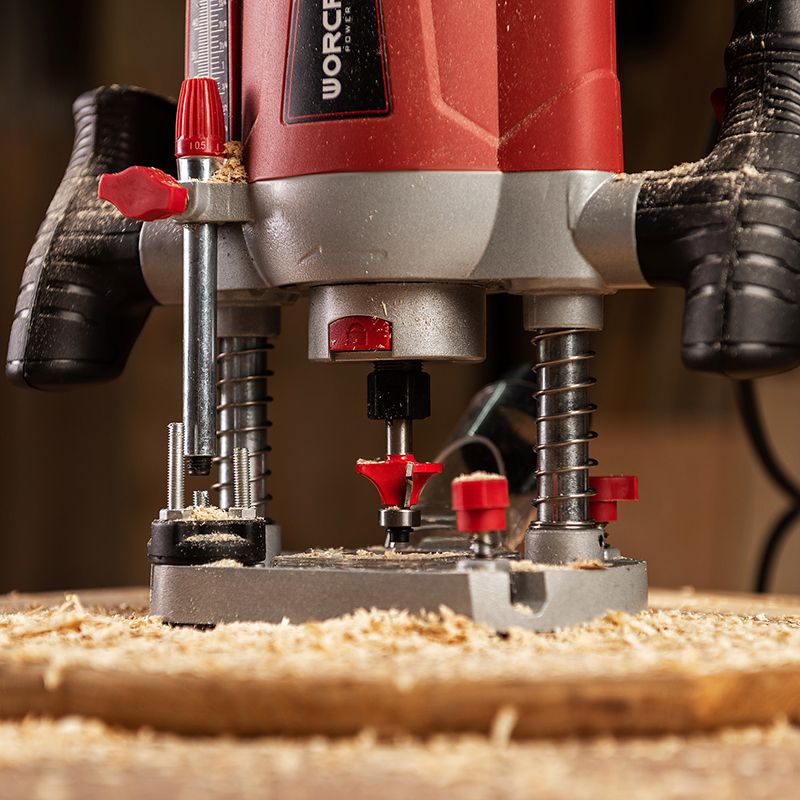 Двигатель мощностью 1200 Вт позволит производить формирования профилей на плинтусах и плитах для мебели, пазов, продольных отверстий, обработки по копиру, фрезерования узоров, орнаментов или надписей, а также сверления в дереве, ДСП и фанере.