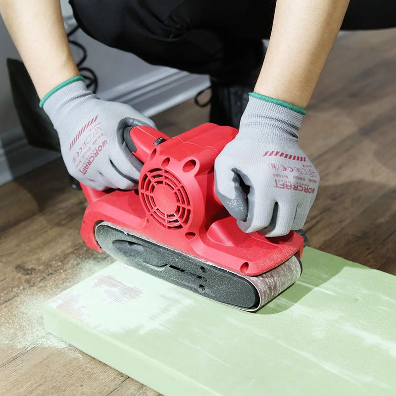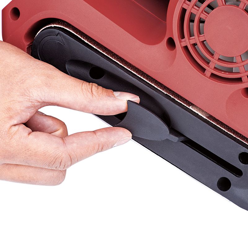 Размер шлифовальной ленты 76x533 мм. Не боится встречи с шурупами, гвоздями, а так же другими предметами. Эта особенность ленточной шлифмашины важна, когда обрабатываются готовые изделия, которые часто имеют выступающие металлические элементы.