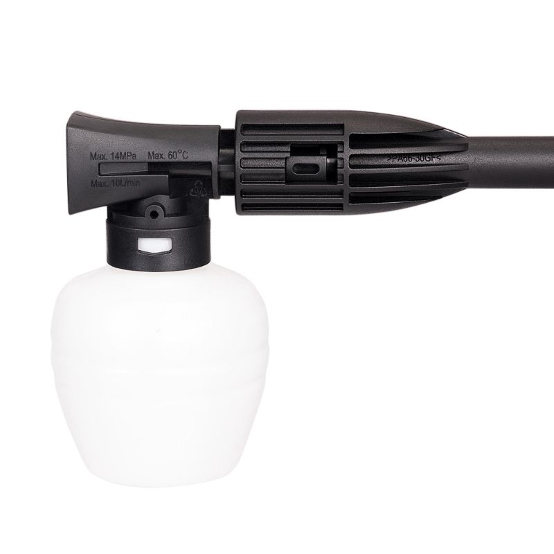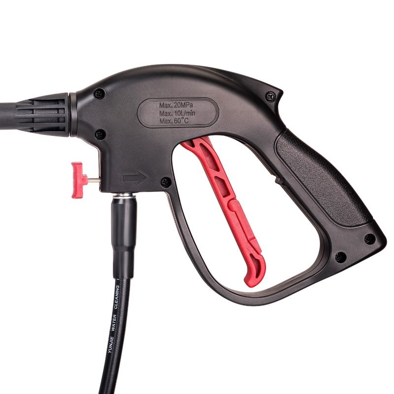 Армированный 5-метровый шланг высокого давления с большим запасом прочности позволяет выполнять многие виды работ без перемещения аппарата и добавляет комфорт в эксплуатации.