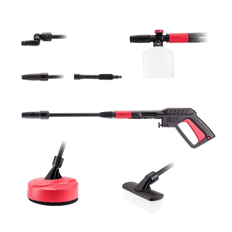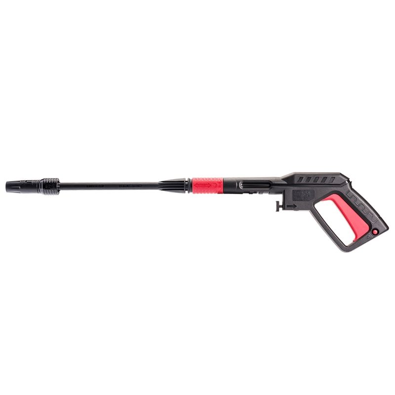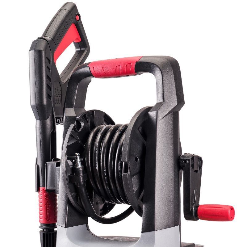 Армированный 8-метровый шланг высокого давления с большим запасом прочности позволяет выполнять многие виды работ без перемещения аппарата и добавляет комфорт в эксплуатации.