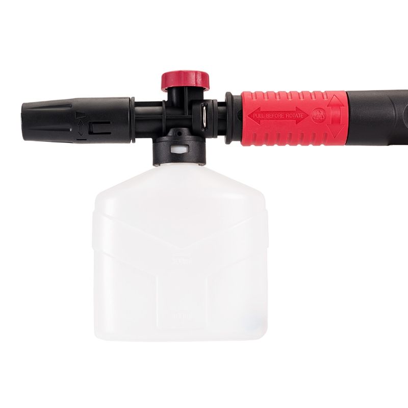 «Пеногенератор» с регулировкой формы струи и регулировкой подачи позволяет распылить густую пену наиболее эффективно.