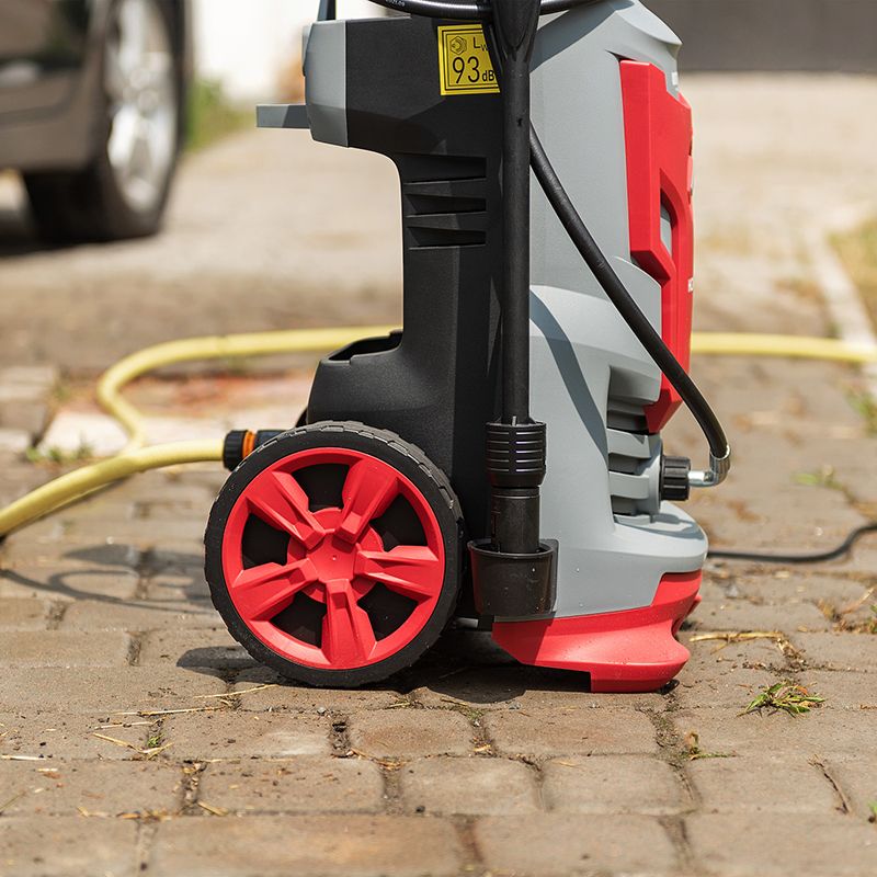 Армированный 5-метровый шланг высокого давления с большим запасом прочности позволяет выполнять многие виды работ без перемещения аппарата и добавляет комфорт в эксплуатации.