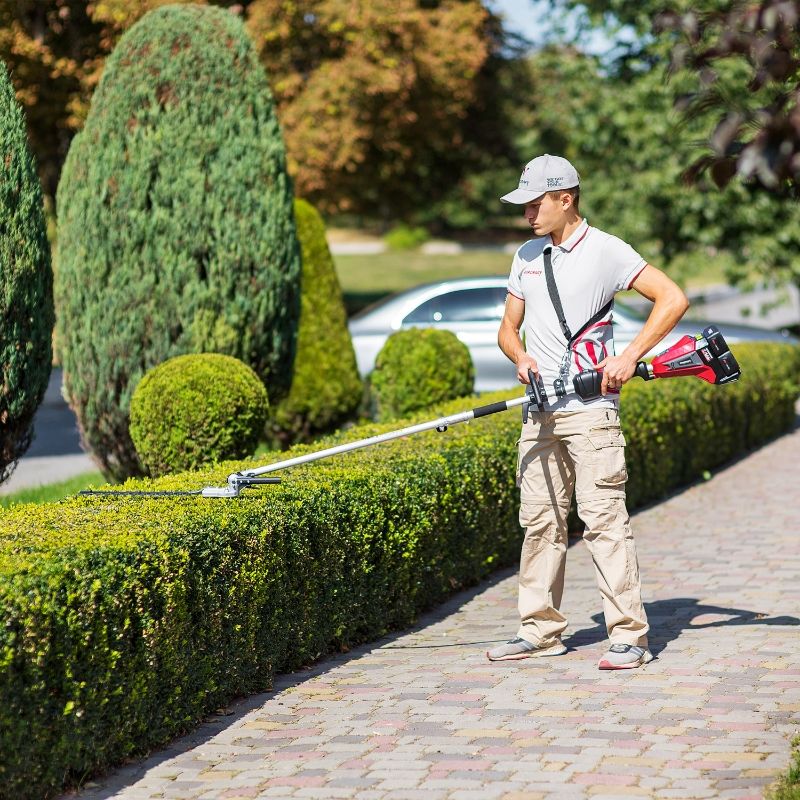 Позволяет расширить область применения вашего триммера и выполнять разнообразные задачи: стрижка и обрезка кустарников и живых изгородей, создание садовых композиций на приусадебном участке, в саду и парках.