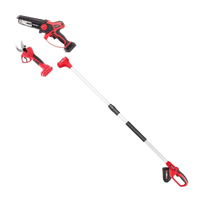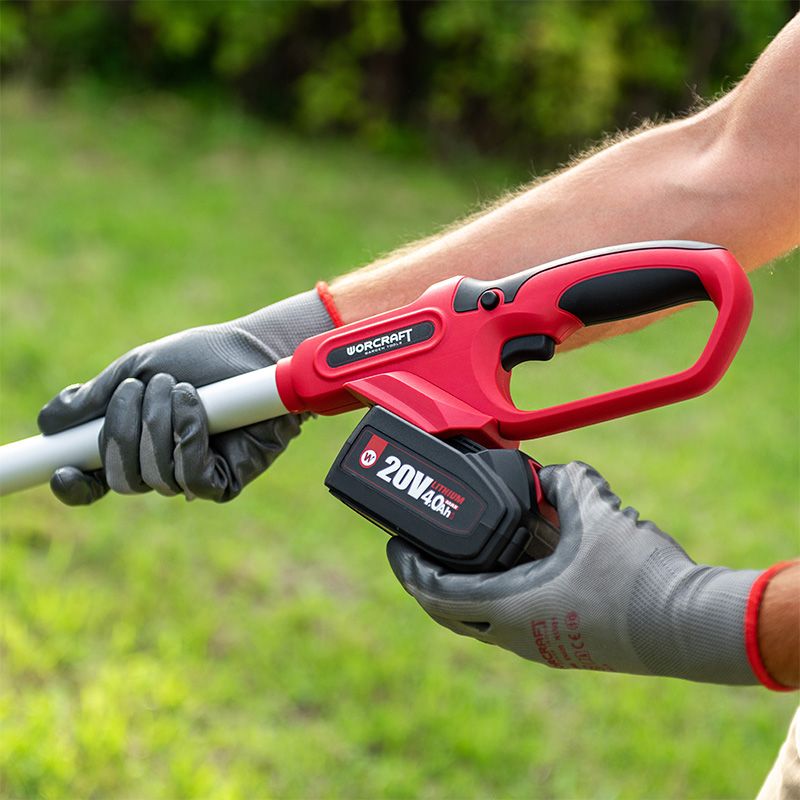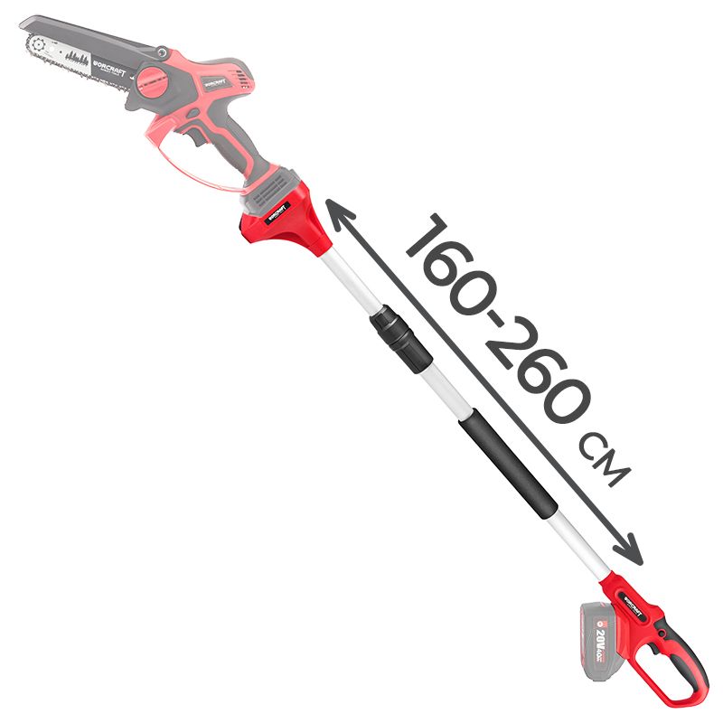 Телескопический удлинитель WORCRAFT WER002 позволяет использовать пилу WORCRAFT CHS‑S20LiBP и секатор WORCRAFT CSC‑S20LiBP в качестве высотореза и эффективно обрезать ветви на высоте до 4-5 метров без необходимости использовать лестницу.