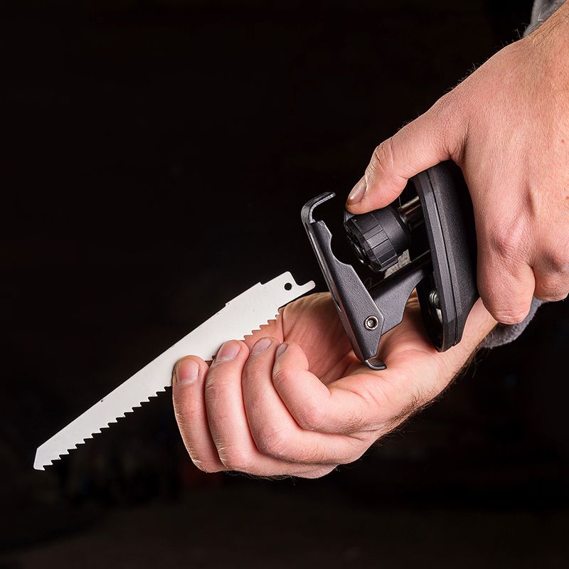 Возможность крепления пильных полотен зубцами вверх для более удобной работы в труднодоступных местах.