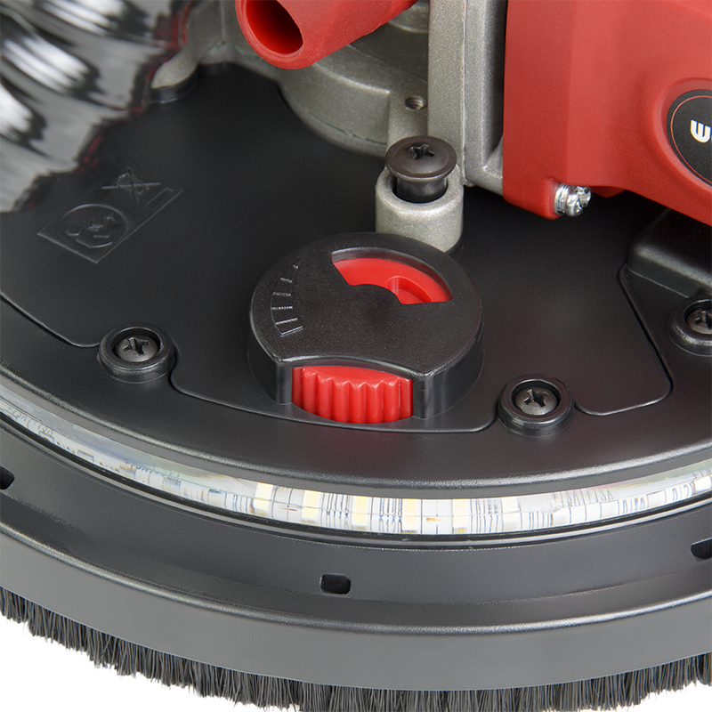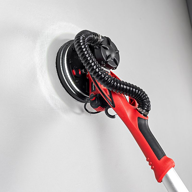 Благодаря двигателю мощностью 900 Вт с металлическим редуктором шлифовка стен, потолков, удаление остатков обоев, краски и лишней штукатурки выполняются легко.
