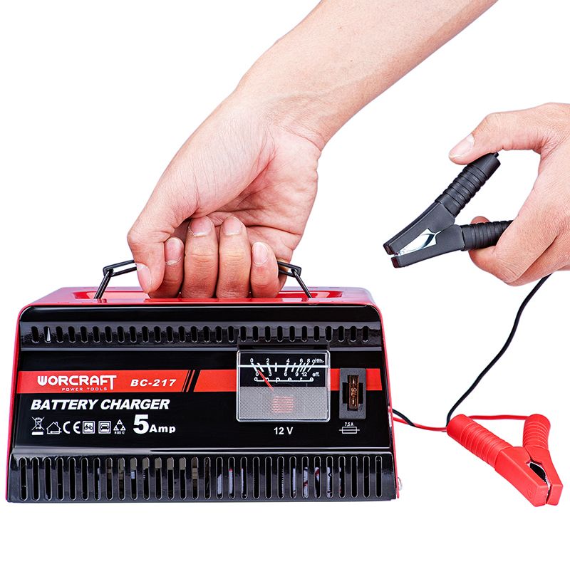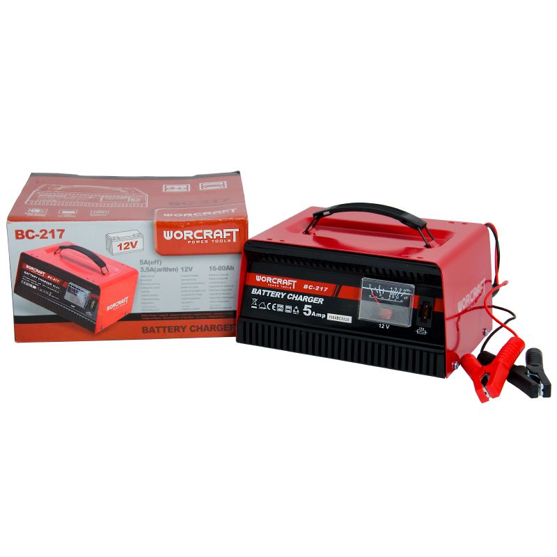 Зарядное устройство WORCRAFT ВС-217 предназначено как для частичной, так и полной зарядки свинцово-кислотных аккумуляторных батарей (автомобилей, моторных лодок и т.п.) напряжением 12 В и емкостью от 16 до 80 Ач.