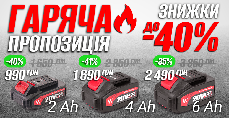 В нашому ексклюзивному фірмовому інтернет-магазині представлена лінійка акумуляторного інструменту ONE FOR ALL. Головною особливістю якої є універсальна акумуляторна батарея та зарядний пристрій, які можна використовувати для всієї лінійки інструменту. Це більш ніж 100 інструментів.