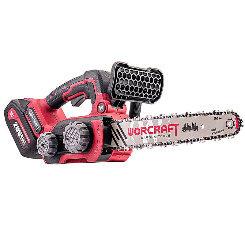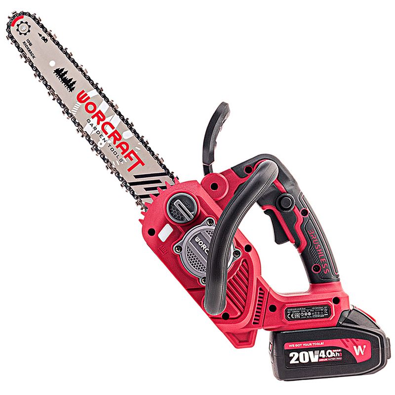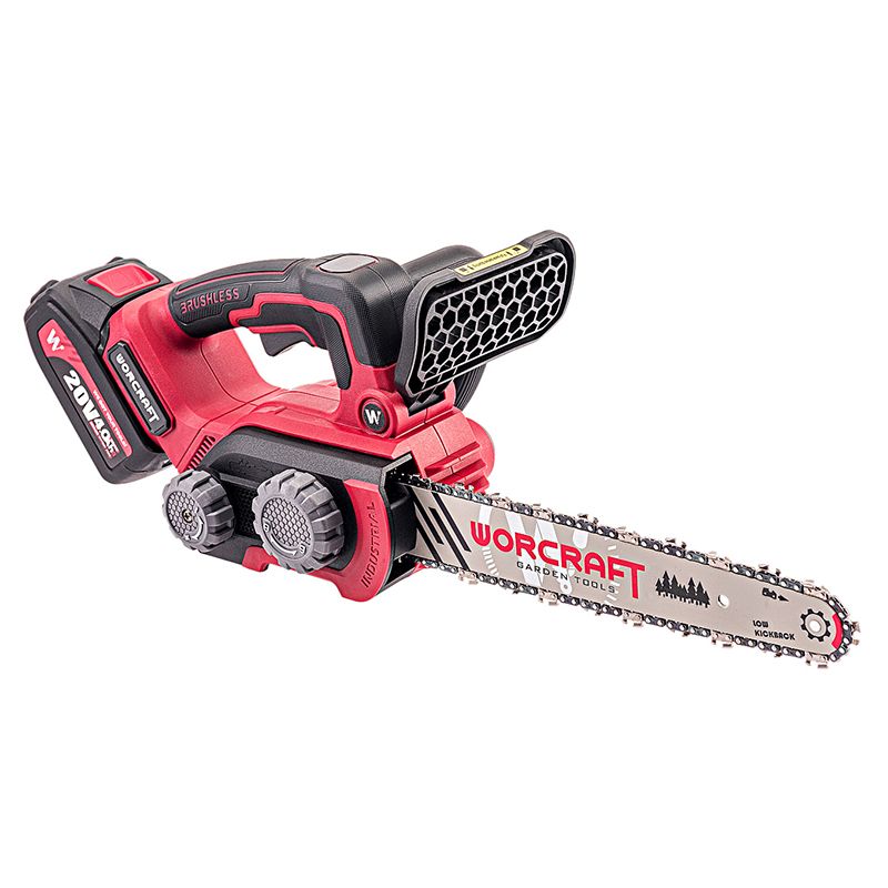 Акумуляторна безщіткова пила ланцюгова WORCRAFT CGC-S20LiBA — це потужна та мобільна акумуляторна ланцюгова пила для швидкого обрізання саду чи заготівлі дров на присадибній ділянці.