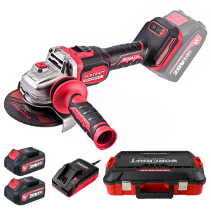 Акумуляторна безщіткова болгарка WORCRAFT CAG-S20LiBM-125B поставляється в комплекті з двома акумуляторами, зарядним пристроєм та міцним пластиковим кейсом.