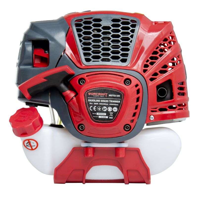 Мотокоса бензинова Worcraft WORCRAFT WGT52-320 має високі експлуатаційні характеристики. В основі виробу знаходиться надійний двотактний двигун з повітряним охолодженням потужністю 4,3 к.с. і робочим об'ємом циліндра 52см³.